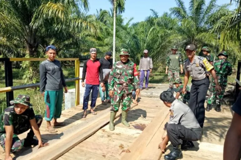 KOTA BENGKULU.TEROPONGPUBLIK.COM-Satuan Tugas TNI Manunggal Membangun Desa (Satgas TMMD) ke-105 tahun 2019 Kodim 0407 Bengkulu bersama masyarakat,Polisi terus bahu-membahu menyelesaikan pembangunan jembatan Teluk Keramat jembatan yang dibangun tersebut menghubungkan dua kelurahan Padang serai dan kelurahan sumber jaya Kecamatan Kampung Melayu Bengkulu