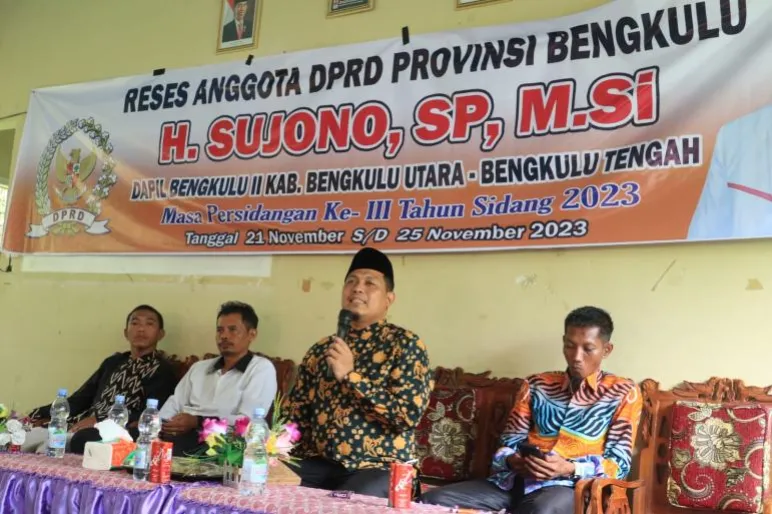 TEROPONGPUBLIK.CO.ID >><< Anggota DPRD provinsi Bengkulu, H. Sujono, S.P, M.Si, melakukan Reses masa sidang ke-III di Aula kantor desa Margomulyo kecamatan Pondok Kubang, kabupaten Bengkulu Tengah. Dalam pertemuan yang penuh antusiasme, Sujono mengucapkan terima kasih kepada masyarakat yang hadir untuk menyampaikan aspirasi.