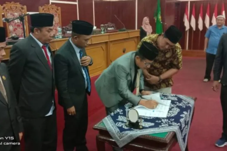 KOTA BENGKULU.TEROPONGPUBLIK.COM<<>>> Meski sempat tertunda, Anggaran Pendapatan dan Belanja Daerah (APBD) Kota Bengkulu tahun anggaran 2020 akhirnya disahkan malam tadi, Jumat (29/11/2019). Pihak eksekutif dan legislatif sudah sepakat menandatangi APBD Kota Bengkulu 2020. Hal ini disampaikan Walikota Bengkulu Helmi Hasan melalui Asisten I Setda Kota Bengkulu Bujang HR usai ketok palu sidang paripurna pengesahan APBD Kota Bengkulu 2020.