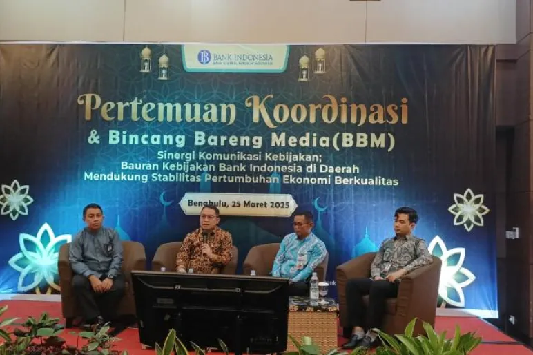 TEROPONGPUBLIK.CO.ID <<<>>> Bank Indonesia (BI) Perwakilan Bengkulu mengadakan kegiatan Bincang Bareng Media (BBM) sebagai upaya memperkuat sinergi komunikasi kebijakan ekonomi. Acara ini berlangsung di Hotel Santika pada Selasa (25/3/2025) dan dihadiri oleh puluhan perwakilan media di Bengkulu.