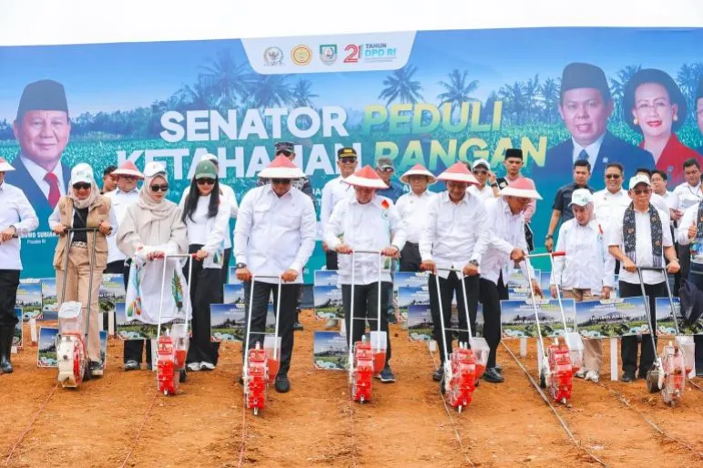 Wakil Gubernur Bengkulu, Mian, bersama Wakil Menteri Pertanian Republik Indonesia, Sudaryono, dan Ketua DPD RI, Sultan B. Najamudin, secara resmi meluncurkan program *Senator Peduli Ketahanan Pangan*. Acara ini berlangsung di UPTD Benih Induk Tanaman Pangan, Hortikultura, dan Perbenihan Perkebunan Provinsi Bengkulu, Desa Taba Lagan, Kabupaten Bengkulu Tengah, pada Sabtu (27/9).Dalam sambutannya, Mian menyampaikan bahwa Provinsi Bengkulu memiliki potensi besar untuk menjadi penopang ketahanan pangan nasional. Menurutnya, faktor utama yang mendukung adalah ketersediaan lahan yang luas, tenaga kerja yang memadai, budaya bertani yang masih kuat, serta iklim tropis yang cocok untuk berbagai komoditas.