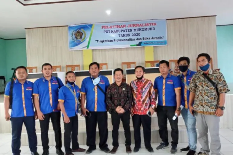 MUKOMUKO.TEROPONGPUBLIK.CO.ID>><< Pelatihan jurnalistik dasar ini ditujukan bagi wartawan muda atau fresh graduate yang ingin mendalami bidang jurnalistik. melatih peserta menjadi wartawan profesional. Dasar-Dasar Jurnalistik dalam hal keterampilan yang terpenting adalah teknik reportase, termasuk wawancara, dan penulisan berita karena berita merupakan produk utama jurnalistik sekaligus karya utama wartawan,Persatua wartawan Indonesia Kabupaten Mukumuko mengadakan Pelatihan Jurnalistik bagi Wartawan yang ada di kabupaten Mukomuko,dalam kegiatann tersebut langsung dihadir Oleh Bupati Mukomuko Bupati Mukomuko Choirul Huda,Ketua PWI Provinsi Bengkulu,Ketua PWI Mukomuko,Kapolres, Pengadilan, Kajari Kesbangpol Humas, Komimpo PWI SMSI dan AMBO yang ada di Mukomuko.Kamis,23/07/2020.