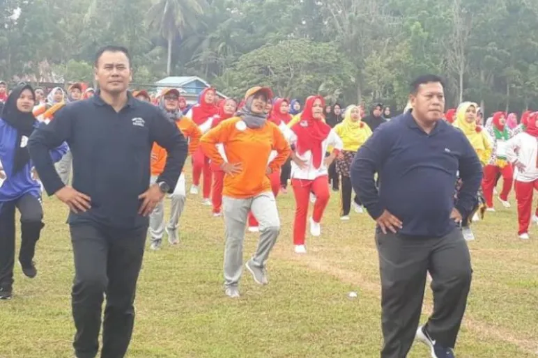 Bupati Choirul Huda didampingi Sekda Mukomuko Marjohan, Ketua TP PKK Mukomuko Ani Tri Ratnawati, ikut senam Germas bersama ratusan masyarakat.