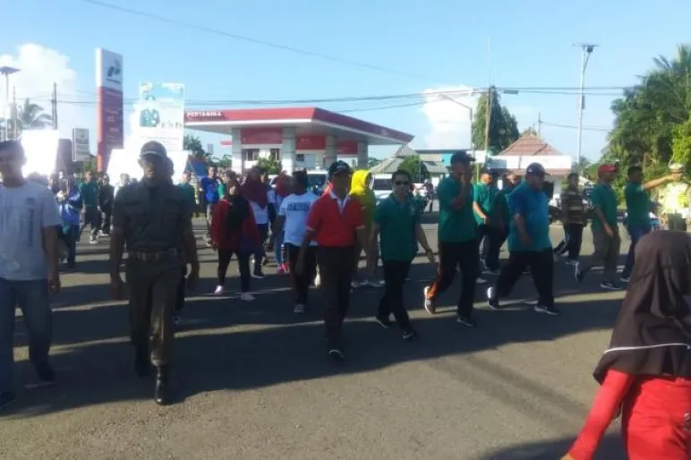 Jalan santai ini di ikuti ribuan peserta dari berbagai wilayah yang ada di Kabupaten Mukomuko.Star dimulai dari lapangan Merdeka dan nis di panggung utama komplek Pemda Mukomuko.
