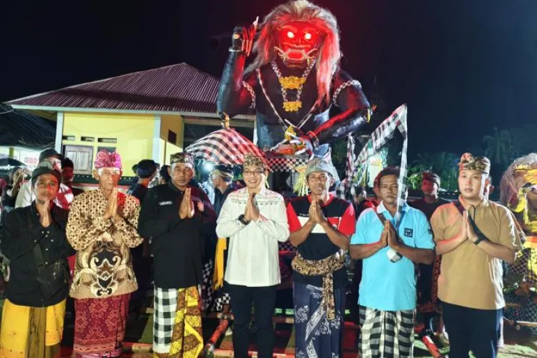 TEROPONGPUBLIK.CO.ID <<<>>> Bupati Seluma, Teddy Rahman, SE, MM, menghadiri Pawai Ogoh-Ogoh yang berlangsung di Desa Air Petai, Kecamatan Sukaraja. Acara ini merupakan bagian dari tradisi tahunan yang bertujuan untuk membersihkan alam semesta dari pengaruh negatif serta menyambut tahun baru dengan hati yang bersih dan suci.