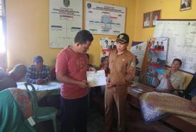TEROPONGPUBLIK.CO.ID - Pemerintahan desa anyar bagikan bantuan BLT-DD tahap satu sebanyak 30 KPM di aula kantor desa