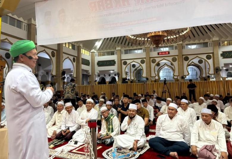 TEROPONGPUBLIK.CO.ID - Suasana Masjid Agung At-Taqwa Kota Bengkulu begitu ramai dipenuhi ribuan jamaah dari berbagai