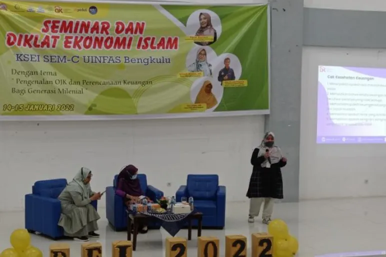 BENGKULU.TEROPONGPUBLIK.CO.ID>><<KSE SEM-C UIN Fatmawati Sukarno Bengkulu melaksanakan kegiatan Seminar dan Diklat Ekonomi dengan tema “Pengenalan OJK dan Perencanaan Keuangan Bagi Generasi Milenial”. Yang dilaksanakan di Gedung Serba Guna. Jumat (14/01/2022)