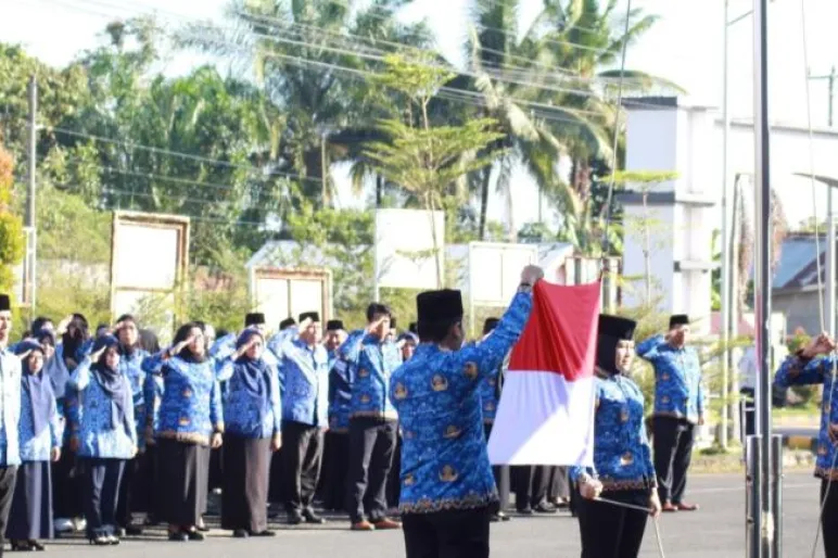 TEROPONGPUBLIK.CO.ID >><< Bertindak sebagai leading sector upacara bendera dalam rangka memperingati Hari Kebangkitan Nasional yang ke 115 tahun 2023 di Halaman Kantor Bupati berjalan hikmat, Senin (22/05/2023).