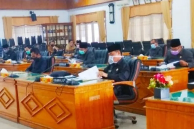 BENGKULUUTARA.TEROPONGPUBLIK.COM>><<Dewan Perwakilan Rakyat Daerah (DPRD) Bengkulu Utara (BU), gelar paripurna agenda penyampaian nota pengantar LKPJ Bupati BU tahun 2019, Senin (6/4/2020). Rapat dipimpin oleh Ketua DPRD BU, Sonti Bakara dan Bupati diwakilkan oleh Wakil Bupati Arie Septia Adinata.