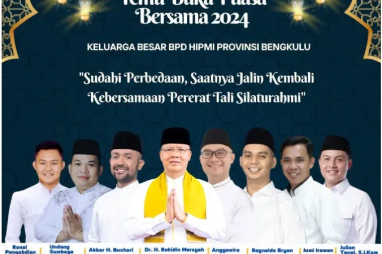 TEROPONGPUBLIK.CO.ID <<>> Dalam rangka mempererat tali silaturahmi dan mendorong perkembangan kewirausahaan di Provinsi Bengkulu, keluarga besar Badan Pengurus Daerah Himpunan Pengusaha Muda Indonesia (BPD HIPMI) Provinsi Bengkulu menggelar acara Temu Buka Puasa Bersama pada tahun 2024. Bertempat di salah satu hotel Bengkulu, acara yang diselenggarakan pada Sabtu, 6 April 2024, mengusung tema "Sudahi Perbedaan, Saatnya Kembali kebersamaan untuk Pererat Tali Silaturahmi".