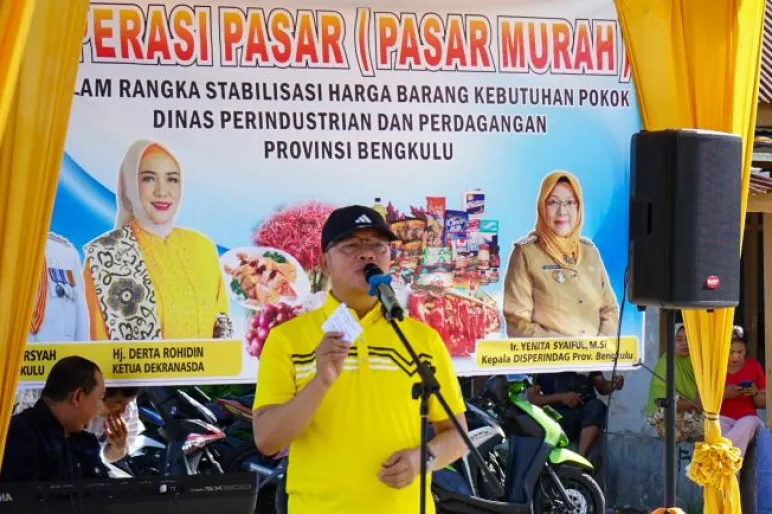TEROPONGPUBLIK.CO.ID > Gubernur Rohidin Mersyah secara resmi membuka operasi pasar murah yang diselenggarakan oleh Pemerintah Provinsi Bengkulu di Pasar Pedati, Kabupaten Bengkulu Tengah. Dalam sambutannya, Gubernur Rohidin menandaskan bahwa kegiatan ini menjadi titik awal pelaksanaan Pasar Murah tahun 2024.
