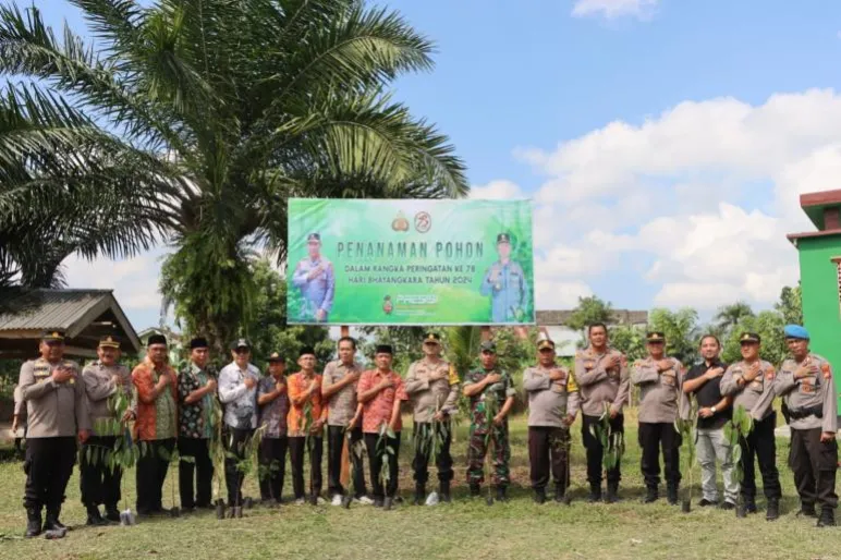 TEROPONGPUBLIK.CO.ID <<<>>> Polres Seluma, dipimpin oleh Kapolres AKBP Arif Eko Prastyo, S.I.K, M.H., melaksanakan kegiatan penanaman pohon dalam rangka memperingati HUT Bhayangkara ke-78. Acara yang mengusung tema "Presisi Menuju Indonesia Emas: Transformasi Ekonomi yang Inklusif dan Berkelanjutan" ini berlangsung pada Kamis, 27 Juni 2024, di Polsek Seluma Timur, Kabupaten Seluma.