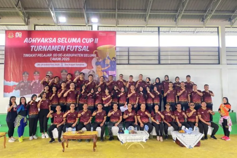 TEROPONGPUBLIK.CO.ID <<<>>> Suasana penuh keceriaan mewarnai kegiatan senam sehat sekaligus final turnamen *Adhyaksa Seluma Cup* tingkat Sekolah Dasar (SD) yang digelar di Gedung Olahraga (GOR) Kejaksaan Negeri Seluma, Jumat (29/8/2025). Acara yang diselenggarakan dalam rangka memperingati Hari Lahir Kejaksaan Republik Indonesia ke-80 tahun ini dihadiri langsung oleh Bupati Seluma, Teddy Rahman, S.E., M.M., serta Wakil Bupati Seluma, Drs. Gustianto.