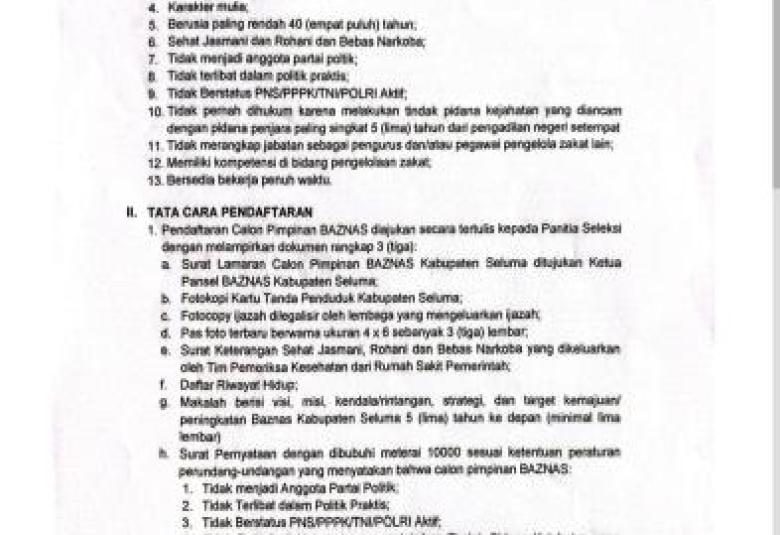 Pansel Umumkan Rekrutmen Calon Pimpinan BAZNAS Seluma Periode 2026-2031