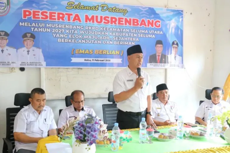 TEROPONGPUBLIK.CO.ID <<<<>>> Pemerintah Kabupaten Seluma kembali menggelar Musyawarah Perencanaan Pembangunan (Musrenbang) tingkat kecamatan sebagai bagian dari tahapan penyusunan program pembangunan tahun mendatang. Kali ini, Musrenbang berlangsung di Aula Kantor Camat Seluma Utara, Rabu (11/2/2026), dan dibuka secara resmi oleh Bupati Seluma yang diwakili Asisten Perekonomian dan Pembangunan Setda Kabupaten Seluma, H. Dadang Kosasih, S.T., M.T.