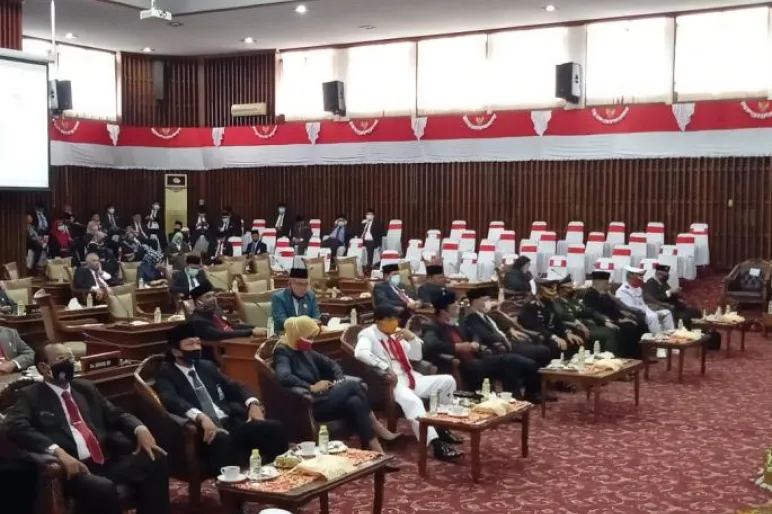 BENGKULU.TEROPONGPUBLIK.CO.ID-Dewan Perwakilan Rakyat Daerah (DPRD) Provinsi Bengkulu menggelar rapat paripurna dalam rangka mendengarkan pidato kenegaraan presiden dalam rangka memperingati HUT Kemerdekaan ke-75 RI Tahun 2020. Rapat paripurna ini juga mendengarkan pidato penyampaian pengantar keterangan pemerintah atas RUU APBN Tahun 2021 beserta nota keuangan dan dokumen pendukungnya. Paripurna digelar di gedung DPRD Provinsi Bengkulu, Jumat (14/8/2020).