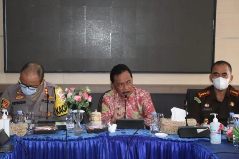 Bupati Bengkulu Tengah Dr. H. Ferry Ramli, S.H., M.H., memimpin rapat secara langsung yang di dampingi Wakil Bupati Septi Peryadi, S.TP., M.AP., Kajari Bengkulu Tengah Tri Widodo, S.H., M.H,. Kapolres Bengkulu Tengah AKBP Ary Baroto, S.IK., M.H., Waka II DPRD Evi Susanti,. S.IP. ,Sekda Edy Hermansyah, P.hD., serta Kepala OPD terkait lainnya