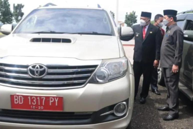 SELUMA.TEROPONGPUBLIK.CO.ID>><< Bupati Seluma Erwin Octavian, SE menyerahkan empat unit Mobil Dinas bekas pakai Forkopimda kepada Pejabat di lingkungan Pemerintah Kabupaten Seluma, Kamis (14/10/2021) di halaman Kantor Bupati Seluma.