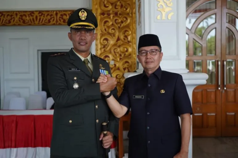 TEROPONGPUBLIK.CO.ID <<<>>> Asisten Pemerintahan dan Kesejahteraan Rakyat Sekretariat Daerah Kabupaten Seluma, H. Hendarsyah, S.IP, MT, turut menghadiri Upacara Peringatan Hari Ulang Tahun (HUT) ke-79 Tentara Nasional Indonesia (TNI) yang dilaksanakan di Balai Raya Semarak, Bengkulu. Upacara ini berlangsung khidmat dan dipimpin oleh Kepala Staf Korem, Kolonel Kav Husnizon, yang bertindak sebagai inspektur upacara.