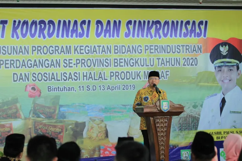 “Cara berfikir seperti ini saya harapkan lengkap betul di Kepala Dinas itu, ketika menentukan industri apa yang akan dipatenkan,” kata Gubernur Rohidin, saat menghadiri Rakor dan Sosialiasi penyusunan program kegiatan bidang perindustrian dan perdagangan se- Provinsi Bengkulu tahun 2020 serta Sosialisasi halal produk Mocaf, di gedung Sentral Kuliner Kota Bintuhan, Kabupaten Kaur, (12/04/2019).