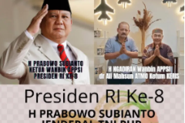 Kita harus bersama, bersatu padu, dan bergandengan tangan mendukung penuh Jenderal TNI (Pur) H Prabowo Subianto sebagai Presiden RI ke-8 berhasil pimpin Indonesia lima tahun mendatang 2024-2029. Walau persoalan dan tantangan Indonesia ke depan makin berat dan kompleks, saya saksi sejarah sejak 2008 hingga 2024 mendampingi Pak Prabowo Subianto, meyakini beliau punya kemauan dan kemampuan untuk atasi berbagai persoalan dan tantangan Indonesia lima tahun ke depan. Saya yakin beliau mau dan mampu sukses kan Indonesia menjemput puncak bonus demografi 2030 dan transformasi jadi negara maju 2045. Bismillaah Pak dokter, In Syaa Allah saya sampaikan salam hormat, doa dan dukungannya kepada beliau, tutur tokoh bangsa asal Gunungkidul Yogyakarta H Ngadiran, Sekjen APPSI 2004-2015 yang pernah dampingi Ketua Umum APPSI, H Prabowo Subianto selama 8 tahun 2008-2015. Yang hingga saat ini Yang tetap membersamai Bo H Prabowo Subianto sebagai Wanbin DPP APPSI. (Red)