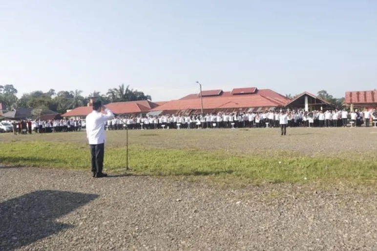 TEROPONGPUBLIK.CO.ID <<<>>> Sekretaris Daerah (Sekda) Kabupaten Seluma, H. Hadianto, SE, MM, M.Si, bertindak sebagai pembina apel bersama yang dilaksanakan pada Rabu, 9 Oktober 2024, di Pasar Sembayat, Kecamatan Seluma Timur. Kegiatan apel ini dihadiri oleh sejumlah pejabat penting dan diikuti oleh seluruh Aparatur Sipil Negara (ASN) serta Non-ASN di lingkungan Pemerintah Kabupaten Seluma.