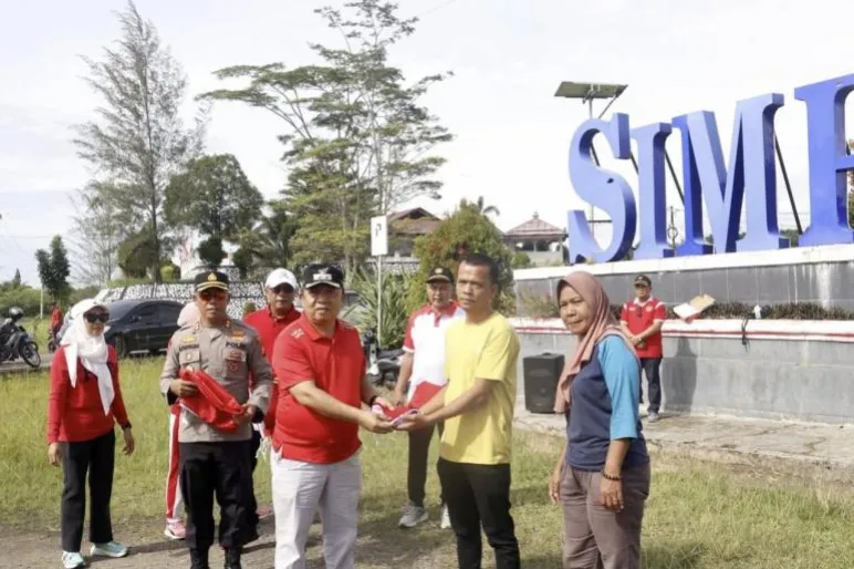 TEROPONGPUBLIK.CO.ID <<<>>> Wakil Bupati (Wabup) Seluma, Drs. H. Gustianto, secara resmi melaunching Gerakan Pembagian Bendera Merah Putih di Kabupaten Seluma. Kegiatan yang berlangsung pada Selasa (12/8/2025) ini dipusatkan di Simpang Enam Tais dan menjadi bagian dari rangkaian menyemarakkan peringatan Hari Ulang Tahun (HUT) ke-80 Kemerdekaan Republik Indonesia.