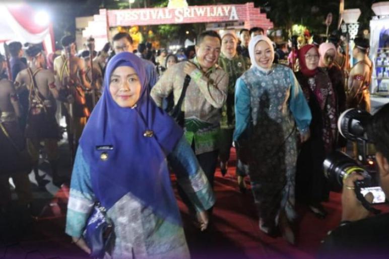 TEROPONGPUBLIK.CO.ID <<<>>>> Wakil Wali Kota Pagar Alam, Hj. Bertha Surya, bersama Ketua Tim Penggerak PKK Kota Pagar Alam, Hera Parianti Ludi, serta Staf Ahli TP PKK Kota Pagar Alam, Dedi Suryadi Lagoan, turut menghadiri pembukaan Festival Sriwijaya tahun ini yang digelar di Monumen Perjuangan Rakyat (MONPERA) Kota Palembang, Sumatera Selatan.