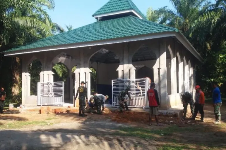 KOTA BENGKULU.TEROPONGPUBLIK.COM-Perehapan masjid Bahhpul Janah yang dilaksanakan anggota satgas TMMD ke 105 Kodim 0407 dan masyarakat ini,Sama sama memperbaiki masjid agar tampak begitu Indah,rapi dan bersih sebab ini rumah ibadah.Untuk saat ini satgas TMMD dan masyarakat lagi memperbaiki teras sekeliling masjid dan juga melamir sehingga sampai Dengan pengecetan"ujar