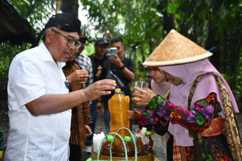 "Semua bahan jamu ini berasal dari desa kita. Yang meraciknya adalah embah saya, saya hanya yang menjualnya saja. Harganya Rp.5000 per gelasnya," ungkap Winda, yang melayani pembeli di Festival Bhumi Belirang.