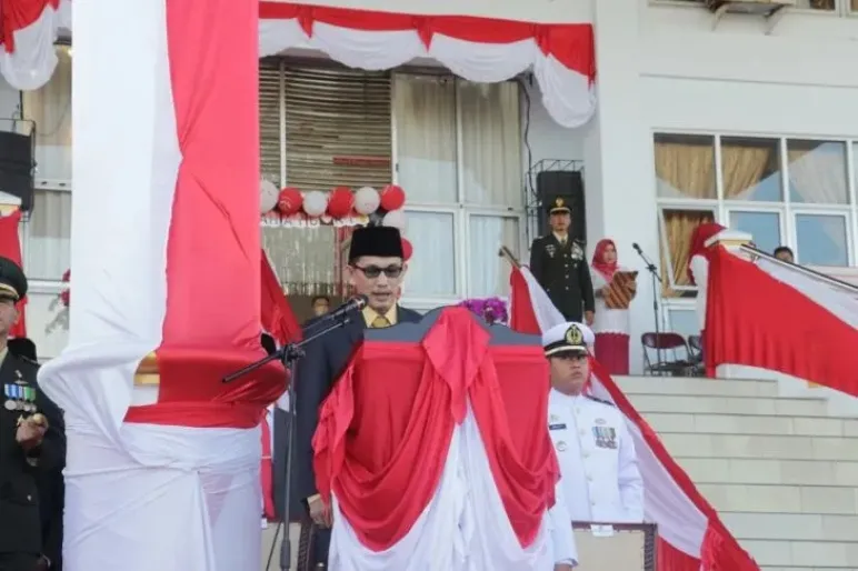 Dalam kesempatan ini, Bupati Mukomuko, Sapuan didapuk sebagai inspektur upacara kemerdekaan. Kemudian.