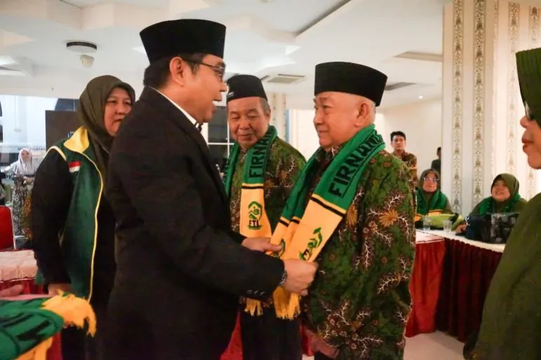 TEROPONGPUBLIK.CO.ID <<<>>> Asisten I Setda Bengkulu Bidang Pemerintahan dan Kesejahteraan Rakyat, Khairil Anwar, melepas rombongan jemaah umrah yang diberangkatkan oleh PT. Firnando Team Indonesia (FTI) di Asrama Haji Bengkulu pada Senin (2/9/2024). Rombongan tersebut terdiri dari 53 jemaah, yang terdiri dari 14 perempuan dan 39 laki-laki.