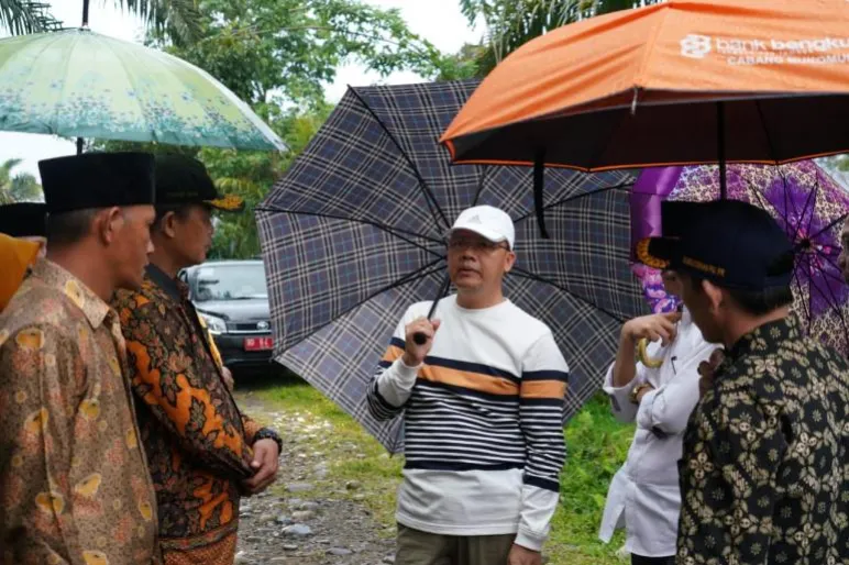 MUKOMUKO.TEROPONGPUBLIK.COM>><< Dalam kunjungan kerjanya ke Kabupaten Mukomuko, Gubernur Rohidin Mersyah meninjau jalan di Kecamatan Selagan Raya yang rencananya menjadi akses baru yang akan menghubungkan Bengkulu dengan Provinsi Jambi.