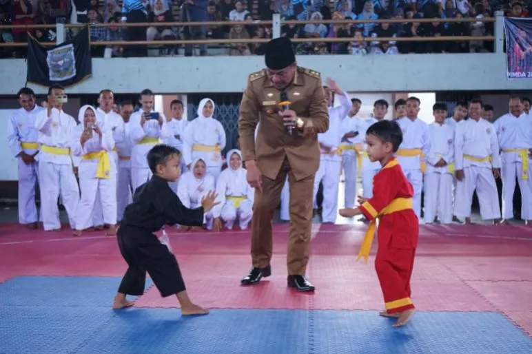 TEROPONGPUBLIK.CO.ID >>><<< Plt Gubernur Bengkulu, Rosjonsyah, secara resmi membuka Open Turnamen Pencak Silat se-Sumatera yang diselenggarakan oleh Kementerian Pemuda dan Olahraga Republik Indonesia (Kemenpora RI) di GOR Sawah Lebar, Bengkulu, pada Senin (21/10/2024). Acara ini diikuti oleh sekitar 870 peserta dari berbagai daerah di Sumatera, menandakan antusiasme yang tinggi terhadap seni bela diri tradisional Indonesia ini.