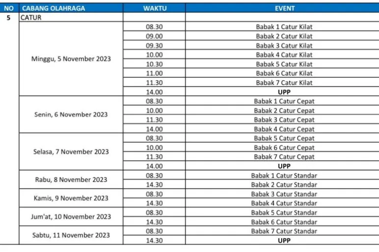 Dalam pertandingan catur kilat nomor beregu, tim Bengkulu akan menurunkan empat pecatur. Papan 1 diisi oleh Manalu (MN), papan 2 oleh Hermawan Susanto (MN), papan 3 oleh Reimon Ronaldo (MN), dan papan 4 oleh David Attay. Sementara itu, dalam nomor perorangan, Adly Juandra akan turun bertanding.