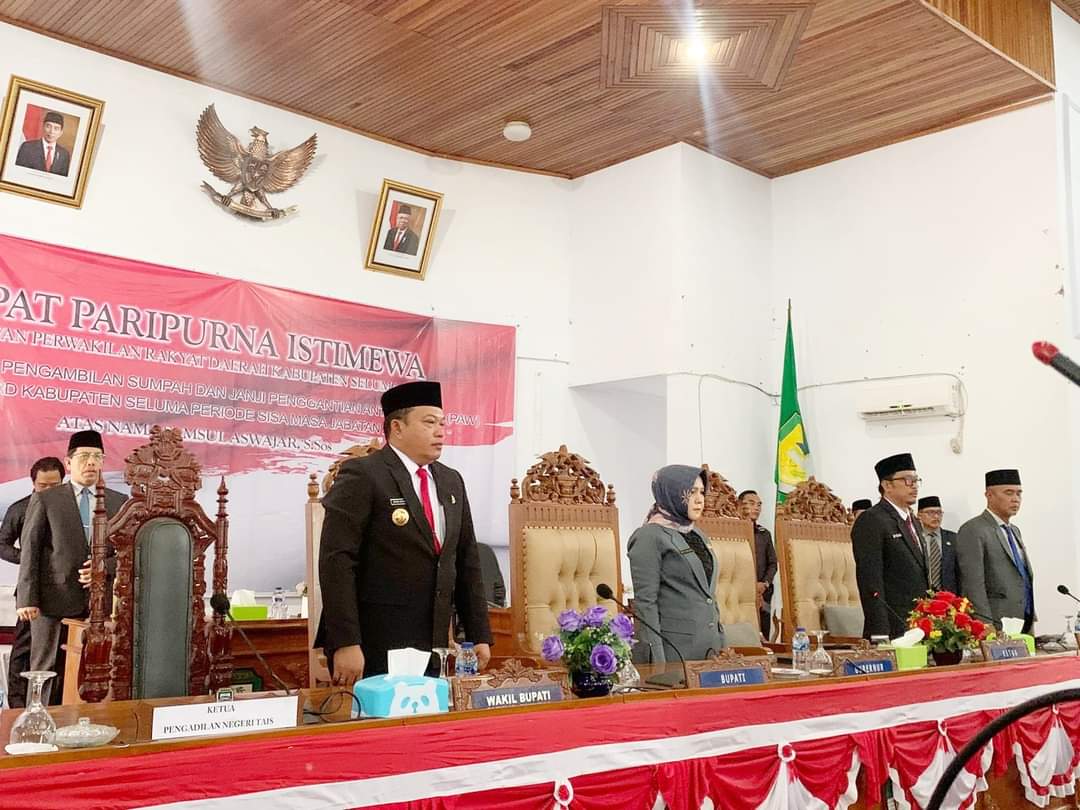 TEROPONGPUBLIK.CO.ID- Bupati Seluma, Erwin Octavian, SE, turut hadir dalam upacara pelantikan Pergantian Antar Waktu (PAW) Wakil Ketua II Dewan Perwakilan Rakyat Daerah (DPRD) Kabupaten Seluma, yang berlangsung di Gedung Paripurna DPRD Kabupaten Seluma pada Rabu, 4 Oktober 2023.