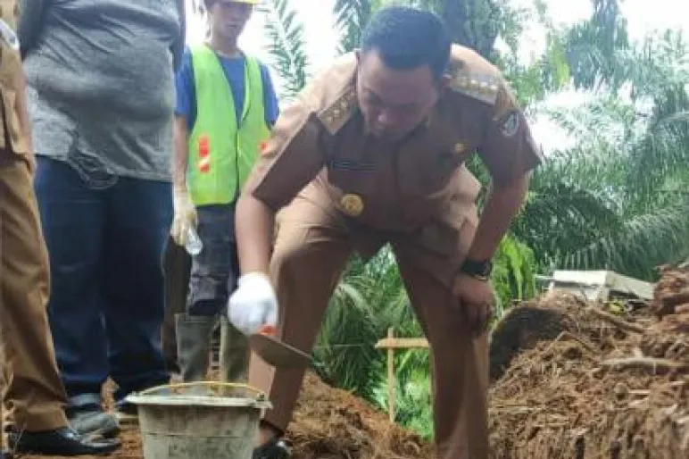 SELUMA.TEROPONGPUBLIK.CO.ID >><< Bupati Seluma Erwin Octavian, SE meletakkan batu pertama sebagai tanda dimulainya pembangunan Base Transceiver Station (BTS) Site Desa Talang Durian, Selasa (6/9/2022).