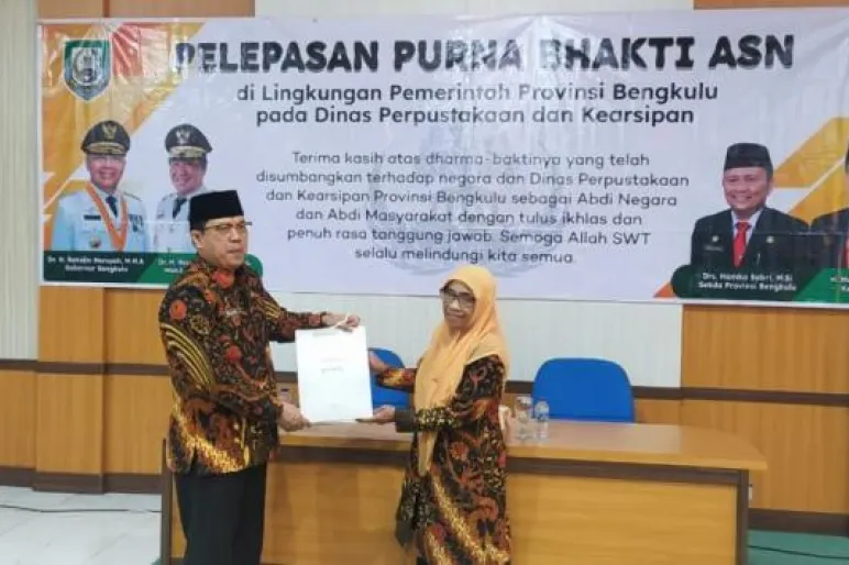 BENGKULU.TEROPONGPUBLIK.CO.ID- Suasana haru mewarnai pelepasan purnabakti pegawai yang memasuki masa pensiun terhitung mulai tanggal 30 Desember 2022. Terpancar kesedihan dari pegawai Perpustakaan dan Kearsipan Provinsi Bengkulu saat harus berpisah dengan seorang rekan yang sehari-hari bersama di tempat kerja.