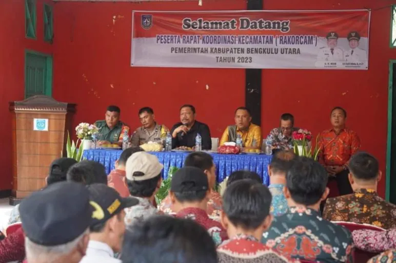 TEROPONGPUBLIK.CO.ID - Bupati Bengkulu Utara, Ir. H. Mian, mengawali Rapat Koordinasi Kecamatan (RAKORCAM) yang melibatkan tiga kecamatan utama: Lais, Batiknau, dan Air Napal. Dalam sambutannya, Bupati menegaskan pentingnya menjaga situasi kondusif menjelang pemilihan umum tahun 2024 kepada seluruh Kepala Desa.