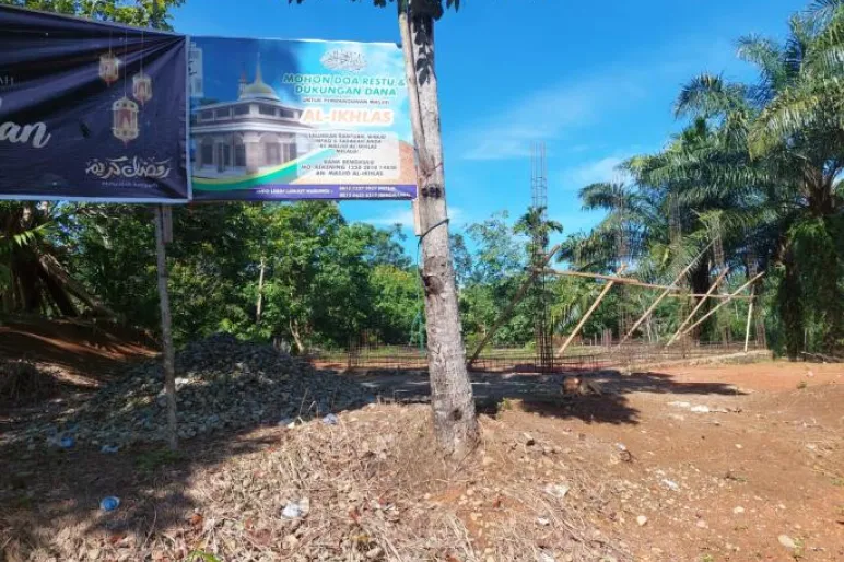 Tanah untuk pembangunan masjid baru tersebut diperoleh dari hibah kantor desa setempat. Selama sekitar 2,5 tahun, masyarakat setempat telah berusaha membangun masjid ini dengan dana swadaya dan tenaga gotong royong. Namun, pembangunan baru mencapai tahap pondasi.