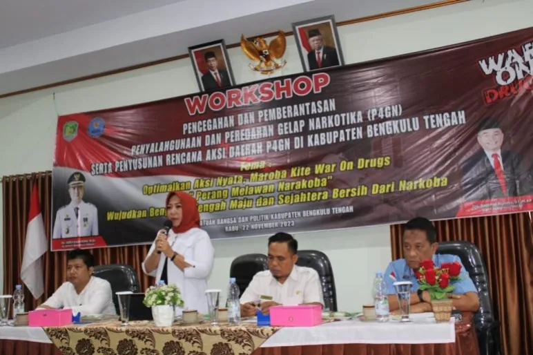 TEROPONGPUBLIK.CO.ID >><< Pemerintah Kabupaten Bengkulu Tengah melalui Badan Kesatuan Bangsa dan Politik (Kesbangpol) mengadakan Workshop dan Penyusunan Rencana Aksi Daerah (RAD) terkait Pencegahan dan Pemberantasan Penyalahgunaan dan Peredaran Gelar Narkotika (P4GN) di Balai Sindu pada Kamis (23/11/2023).