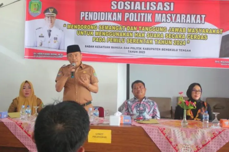 TEROPONGPUBLIK.CO.ID >><< Pemerintah Kabupaten Bengkulu Tengah melalui Badan Kesatuan Bangsa dan Politik (Kesbangpol) menggelar kegiatan pendidikan politik masyarakat di tiga kecamatan yang tergabung dalam Daerah Pemilihan (Dapil) 1. Acara ini merupakan langkah awal dalam upaya meningkatkan pemahaman masyarakat tentang pentingnya partisipasi dalam Pemilu Serentak 2024.