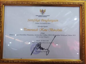 TEROPONGPUBLIK.CO.ID <<<>>> Pemerintah Kota (Pemkot) Bengkulu menerima penghargaan dari Komisi Pemberantasan Korupsi (KPK) sebagai Pemerintah Daerah dengan jumlah Penertiban Prasarana, Sarana, dan Utilitas (PSU) Terbanyak Tahun 2023 di tingkat nasional. Penghargaan ini menempatkan Kota Bengkulu sebagai peringkat pertama nasional dalam kategori tersebut.