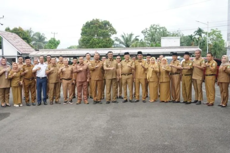 TEROPONGPUBLIK.CO.ID >><< Pemerintah Kabupaten Bengkulu Tengah menggelar apel gabungan sekaligus melaksanakan penandatanganan Perjanjian Kinerja (PK) bagi seluruh kepala Organisasi Perangkat Daerah (OPD) dan Camat di Ruang Lingkup Pemerintah Kabupaten Bengkulu Tengah. Acara ini digelar di Halaman Kantor Bupati dengan pembina apel yang diemban oleh Penjabat Bupati Bengkulu Tengah, Dr. Heriyandi Roni, M.Si. Turut hadir dalam acara tersebut Sekretaris Daerah Drs. Rachmat Riyanto, S.T., M.AP., Para Asisten, Staf Ahli, Kepala OPD, Camat, serta beberapa jajaran lainnya.