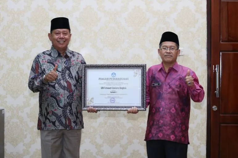 BENGKULU .TEROPONGPUBLIK.CO.ID>><< Prestasi luar biasa diraih Institut Agama Islam Negeri (IAIN) Bengkulu yang sukses meraih penghargaan terbaik l Wajah Bahasa katagori lembaga pemerintah. Penghargaan wajah bahasa digelar oleh Kantor Bahasa Provinsi Bengkulu Kementerian Pendidikan, Kebudayaan, Riset, dan Teknologi diikuti oleh seluruh Lembaga Pemerintah dan Perguruan Tinggi. Universitas Bengkulu (UNIB) sukses menduduki peringkat ke ll. Rabu (25/08)