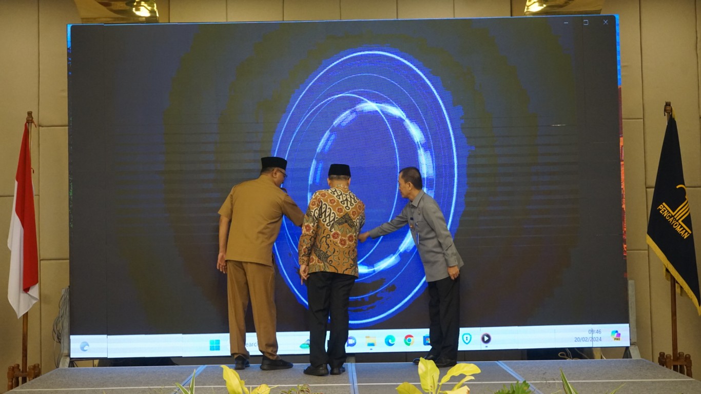 TEROPONGPUBLIK.CO.ID >><< Dalam kegiatan yang berlangsung pada tanggal 28 Februari 2024, Penjabat Bupati Bengkulu Tengah, Dr. Heriyandi Roni, M.Si., bersama dengan kantor wilayah Kementerian Hukum dan Hak Asasi Manusia (HAM) melakukan penandatanganan komitmen bersama. Acara tersebut bertujuan untuk mempromosikan dan mendiseminasi indikasi geografis serta meluncurkan produk lokal daerah dari Kabupaten Bengkulu Tengah, yaitu Batik Sungai Lemau. Acara ini berlangsung di Aula Hotel Two K-Azana Style pada pagi hari.