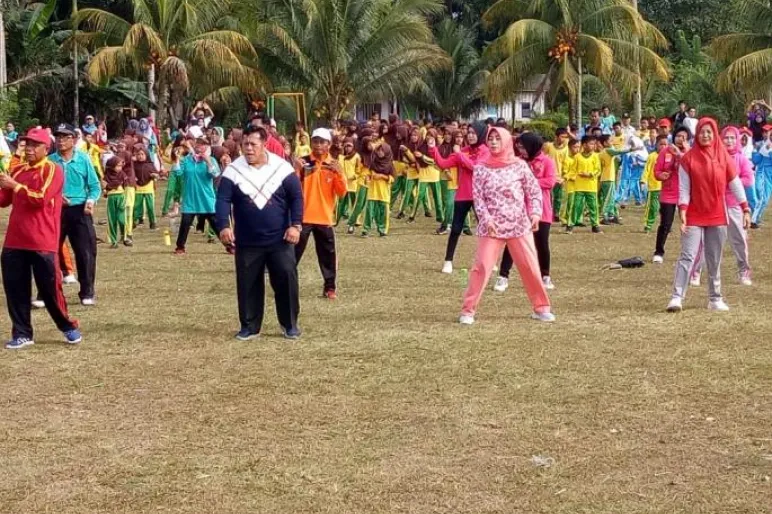 MUKOMUKO.TEROPONGPUBLIK.COM>><<Usai melaksanaka bermacam kegiatan perlombaan dalam rangka menyambut Hari Kesehatan Nasional (HKN)dan pada hari Puskesmas Perawatan Lubuk pinang Kabupaten Mukomuko,mengadakan penutupan sekaligus pembagian hadian bermacam perlombaan,sebelum acara penutupan,Masyarakat dan Bupati Mukomuko Chairul Huda melaksanakan senam germas bersama pada pukul.7.00 Wib,dan perlu diketahui masyarakat sudah berkumpul sejak jam 6 pagi,dan begitu antusiasnya berdatangan,dilapangan Merdeka lubuk pinang 11/112019.