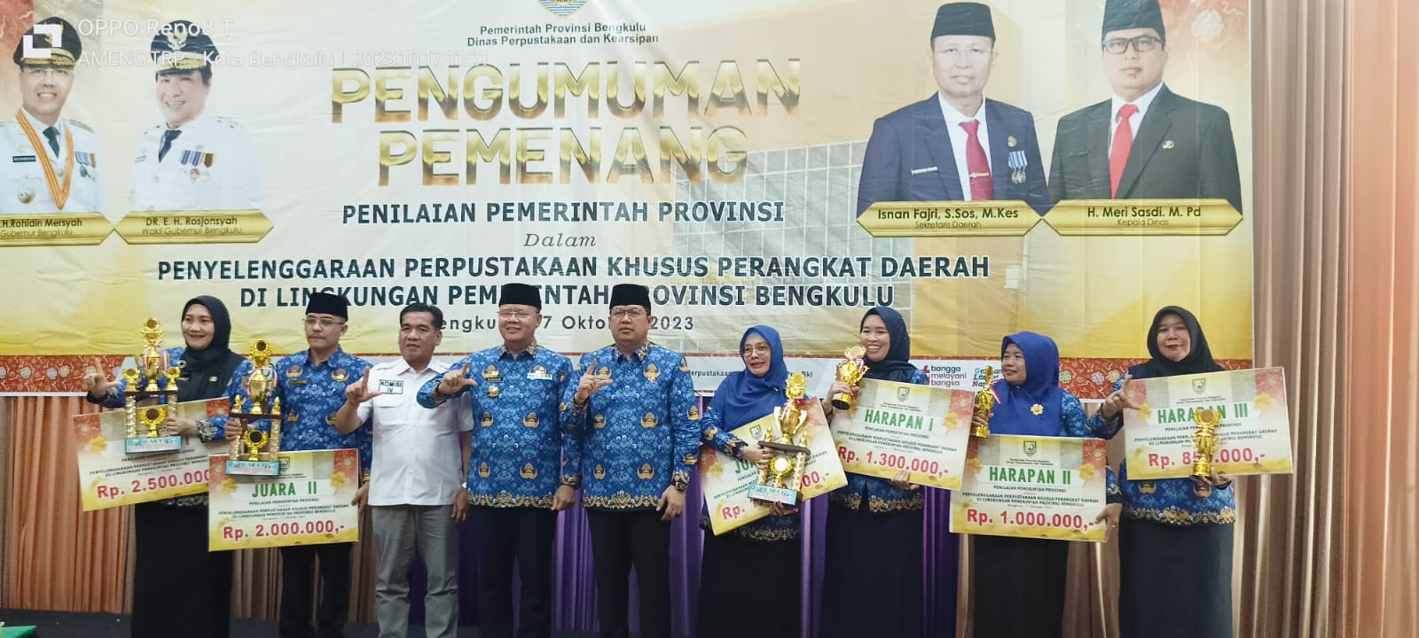 “Kompetisi Perpustakaan Khusus Perangkat Daerah merupakan upaya Dinas Perpustakaan dan Kearsipan Provinsi Bengkulu untuk mendorong inovasi dan kreativitas dalam pelayanan perpustakaan. Selain itu, kompetisi ini juga bertujuan untuk meningkatkan minat baca dan akses informasi masyarakat di seluruh wilayah Provinsi Bengkulu,Para peserta yang berhasil menyajikan konsep perpustakaan terbaik berdasarkan kriteria yang ditentukan oleh panitia kompetisi, menerima penghargaan dan hadiah sebagai bentuk apresiasi dari pemerintah Provinsi Bengkulu. Hadiah-hadiah tersebut meliputi ,Piala,uang saku, peralatan perpustakaan, buku-buku, untuk pengembangan perpustakaan masing-masing perangkat daerah.”tambah