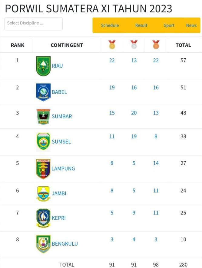 TEROPONGPUBLIK.CO.ID -Pekan Olahraga Wilayah (PORWIL) Sumatera terus menyajikan persaingan ketat dalam perburuan medali. Pada hari keempat kompetisi, terjadi pergeseran posisi yang menarik.